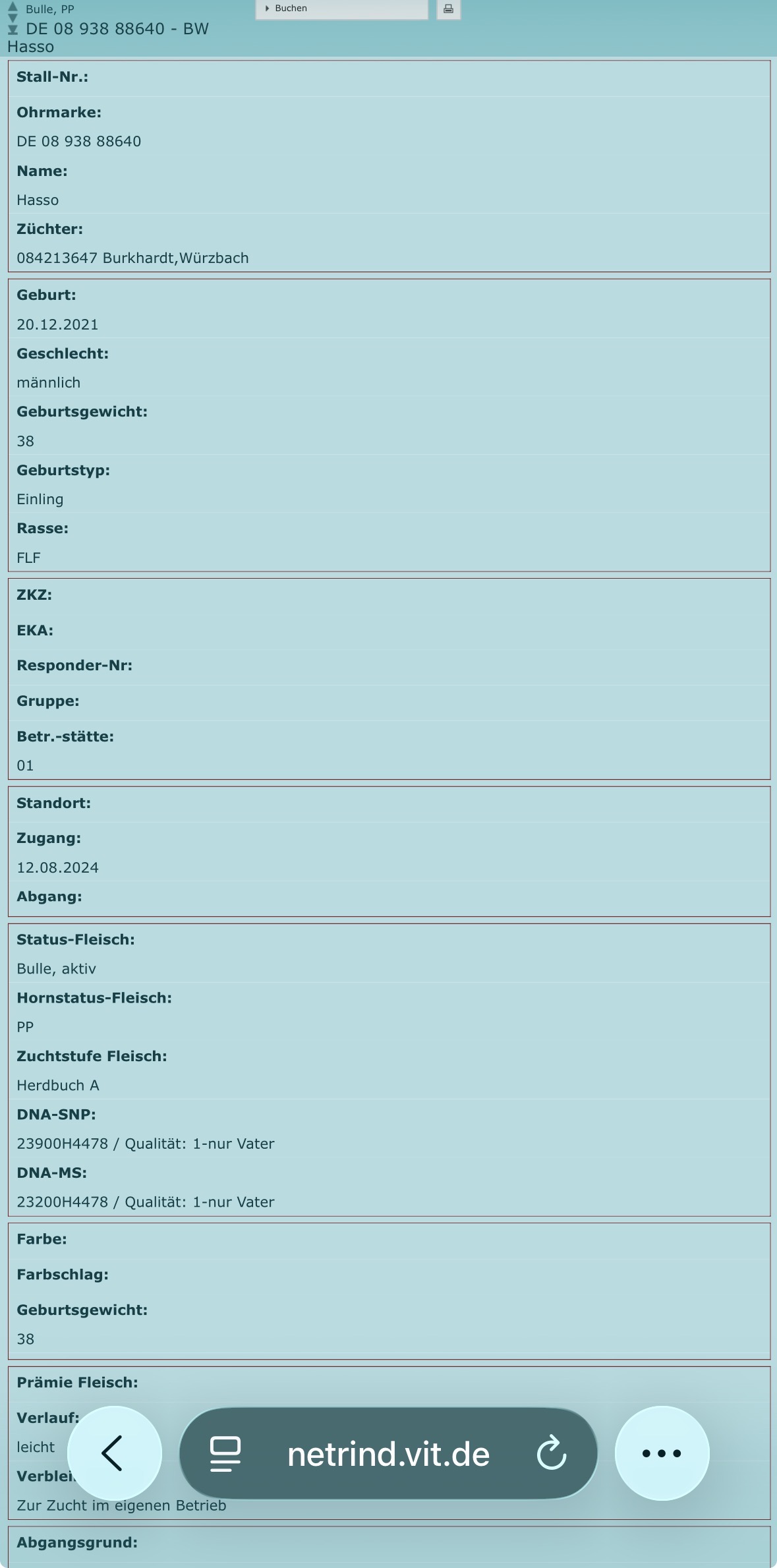 Wir würden gerne unseren ausgedienten Deckbullen/Altbullen Hasso weiter seines Weges schicken.